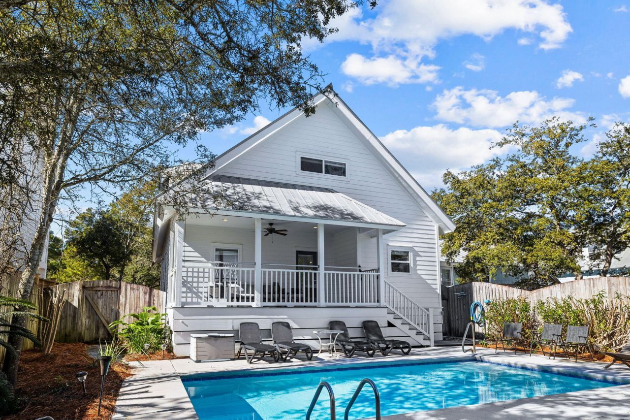 Ideally located in the heart of Seagrove Beach along Scenic Highway 30A, 102 Dalton Drive offers a charming coastal retreat just moments from Eastern Lake and a short walk to public beach access. This four-bedroom cottage combines relaxed beach living with strong vacation rental potential, making it well suited as a primary residence, second home, or investment property.The open-concept living, dining, and kitchen areas create a bright and welcoming space designed for gathering and entertaining. The first floor features two ensuite bedrooms, including the primary suite, offering convenient access to the main living areas. Upstairs, two additional bedrooms share a connecting bath, providing comfortable accommodations for family and guests. Outdoor living centers around a private pool and sun patio, perfect for enjoying warm coastal days after time spent at the beach. Mature landscaping enhances the sense of privacy while creating a lush tropical setting.Located near Eastern Lake, the property offers easy access to paddleboarding, kayaking, and the scenic bike path that runs along 30A. Seaside, along with the area's restaurants, shops, and entertainment, is just a short drive or bike ride away. Recent updates include new interior and exterior paint as well as refreshed landscaping.Whether you're searching for a personal coastal retreat or an investment opportunity along 30A, 102 Dalton Drive presents a wonderful opportunity to enjoy the Seagrove Beach lifestyle.