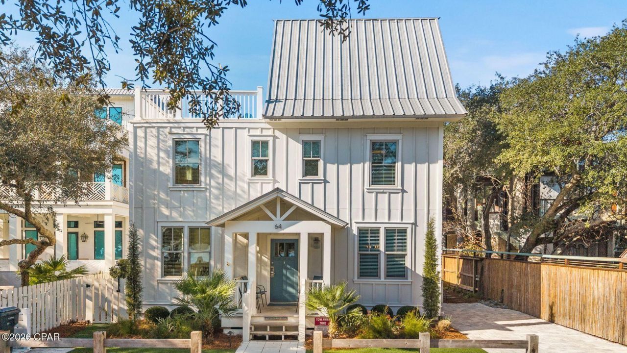 Timeless Grayton Beach character meets thoughtful modern renovation in this rare dual-residence offering just steps from Western Lake, the shoreline, and the heart of one of 30A's most storied beach villages. Originally built in 1970 and extensively reimagined, the property pairs a gracious main home with a fully detached private cottage, creating flexibility for hosting, multigenerational living, or income potential without sacrificing privacy or charm. The main residence spans approximately 2,910 square feet with five bedrooms and four-and-a-half baths across three levels. Recent updates include a fully redesigned kitchen, renovated bathrooms, fresh interior paint, new flooring, updated wiring and plumbing, two HVAC systems, new appliances, and a new roof. From the inviting front porch, morning coffee is enjoyed with tranquil views toward Western Lake. Inside, the first floor opens to a generous living and dining area that flows seamlessly into the kitchen, which offers ample space for an island and connects to a comfortable sitting or game room. A mudroom off the kitchen adds a half bath, a full-sized laundry, and direct access to the side yard for grilling. Two first-floor bedrooms feature updated ensuite baths, while a rear hallway leads directly to the backyard. Upstairs, the second level offers two additional bedrooms and two full baths. The third floor serves as a flexible retreat or bedroom, highlighted by a striking wood A-frame ceiling with access to the large balcony. The detached cottage provides approximately 560 square feet with one bedroom, one full bath, a family room, a full kitchen, a laundry room, an outdoor shower, and a separate entrance. With a new roof and alley access, the cottage allows easy movement to the beach, lake, and dining while remaining discreetly set apart from the main home. Outdoor living is equally compelling, with a spacious backyard ready for relaxed afternoons, a newly added private pool, curated hardscape, and lush landscaping. After a day on the water, rinse off at the outdoor shower or unwind in one of several private seating areas. Parking is generous with a paver driveway, additional front parking, and two rear spaces for a total of seven. Accessibility has been carefully considered with a ramp on the north side and a fully accessible first floor, including the primary bath. Both residences may be rented separately or together, offering exceptional versatility. Positioned moments from Western Lake, two beach accesses, and iconic spots like The Red Bar, Chiringo, and AJ's Grayton Beach, this is a rare opportunity to own a true Grayton Beach classic where coastal history, modern updates, and an unbeatable walkable setting come together with ease.